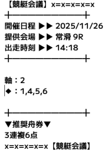 買い目の点数が抑えられていて資金効率が良い。過剰なリスクを取らずに楽しめるので、安定した舟券生活が送れています。