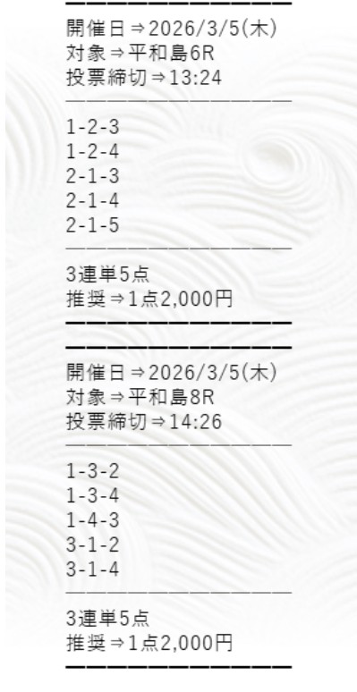 ボートシグナルでは、毎日2レースの無料予想を公開しています。