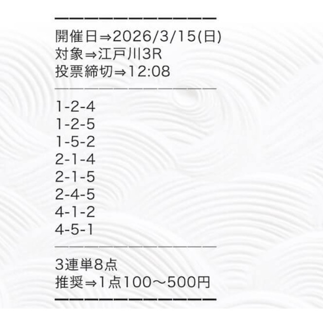 情報代のリスクがあるものの、驚くような回収率です。特に3月5日のレースでは、回収率が5000%を超える驚きの結果となりました。